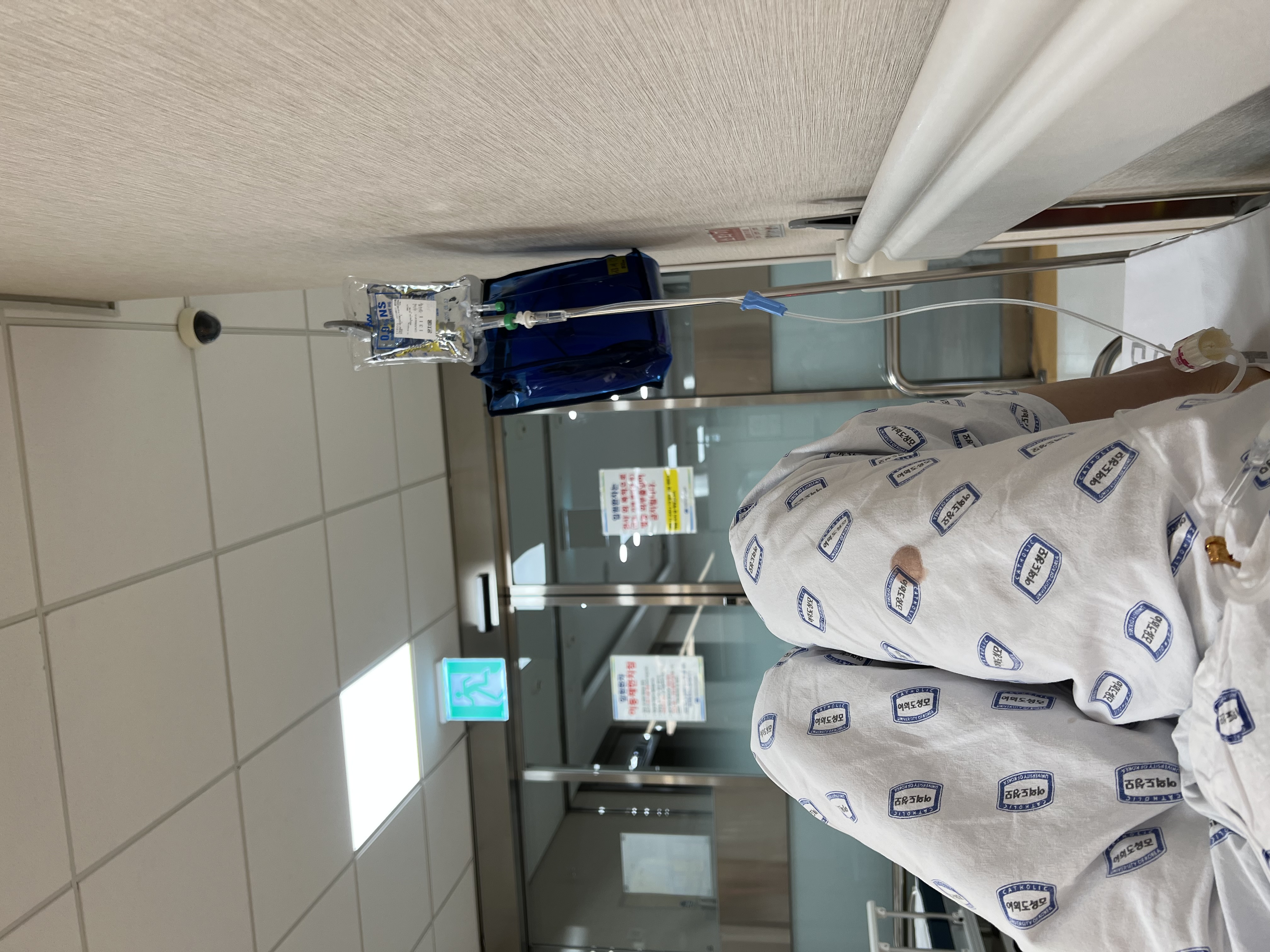 입원 후 저녁 늦게 담당 간호사님께서 왼팔에 카테터를 꽂아 주셨다. 이전에 입원을 해 본 적이 없었기에 카테터를 꽂으면 팔을 거의 못 쓰는 게 아닌지 걱정했었는데, 다행히 일상생활에 큰 지장은 없었고 샤워도 혼자 할 수 있었다. 여름날이었던 지라 에어컨을 틀어도 입원실이 다소 습한 것은 불만이었다. 널어 놓은 수건은 아무리 기다려도 축축했고, 옷에 물기가 묻으면 통 마르지를 않았다.