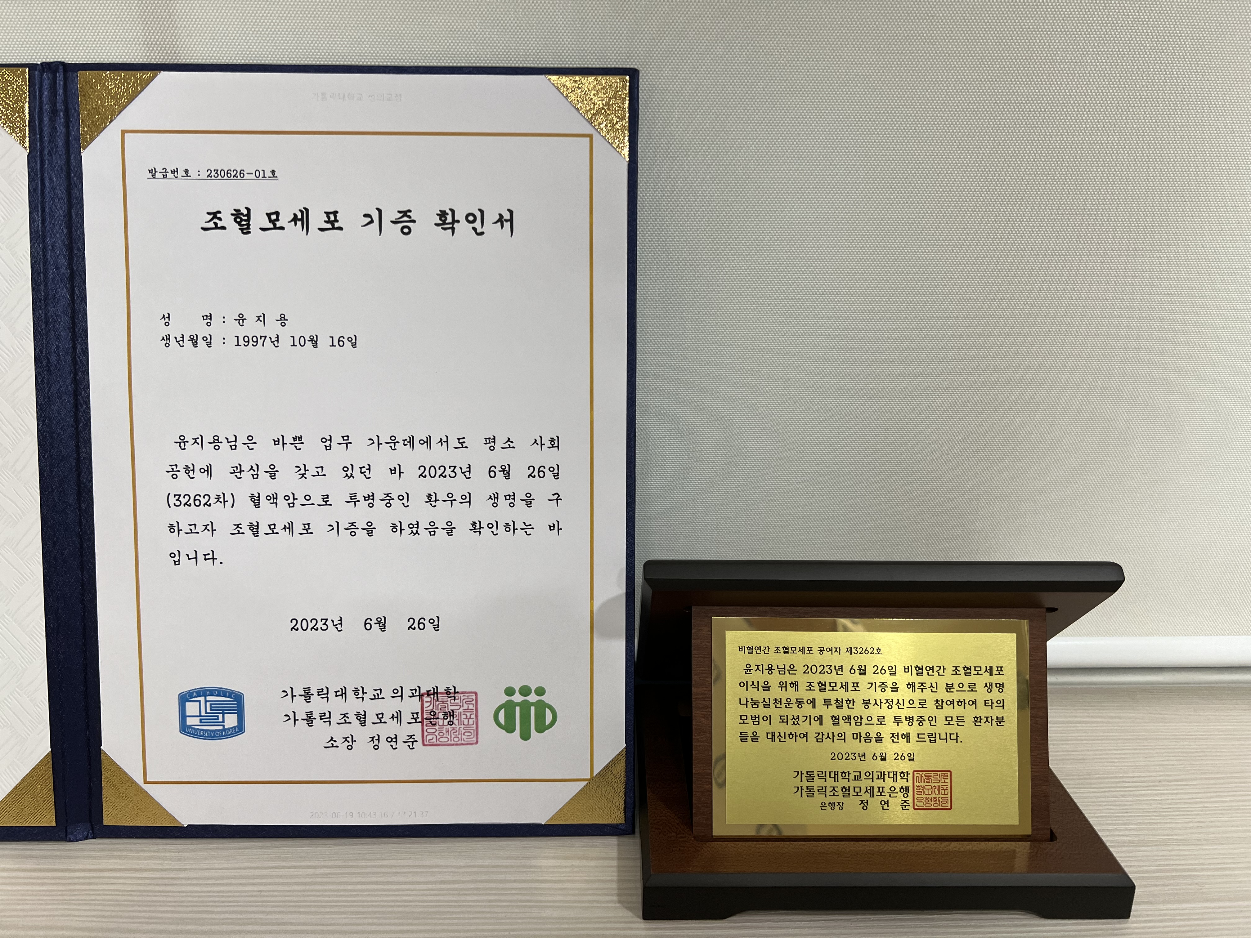 - 2023년 6월에 진행한 조혈모세포 기증 후기입니다.
