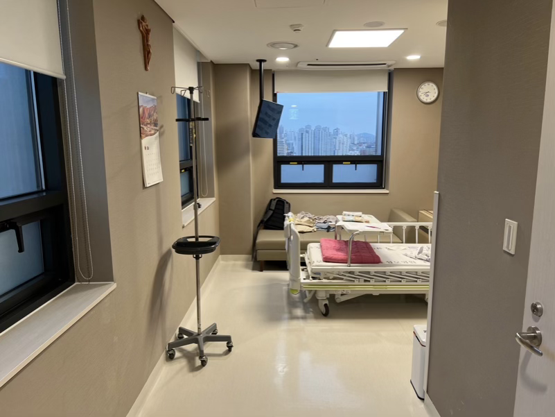 입원실은 여의도성모병원 13층의 1인실을 배정받았는데, 노량진수산시장과 올림픽대로, 그리고 노들로가 한 눈에 들어오는 뷰가 인상적이었다. 환자용 침대는 모든 것이 일체형이다 보니 누워서 노트북을 포함해 모든 작업을 할 수 있는 게 좋았다. 병실에는 TV가 있었지만 HDMI 케이블이 없어 아쉽게도 노트북에 연결해서 사용하지는 못했고, 지상파 방송만 볼 수 있었다. 냉장고를 열어보니 코디네이터님이 준비해 주신 레몬 케이크와 우유, 그리고 주스 몇 병이 있었다. 간식은 코디네이터님께서 적당히 골라서 채워주신다던데, 미리 선호하는 간식을 말씀드려야 했나 싶다. 케이크는 양이 꽤나 많았는데 너무 달아 얼마 먹지는 못했고, 다음 날 편의점에서 간식거리를 따로 사 왔다. 입원 후 저녁 늦게 담당 간호사님께서 왼팔에 카테터를 꽂아 주셨다. 이전에 입원을 해 본 적이 없었기에 카테터를 꽂으면 팔을 거의 못 쓰는 게 아닌지 걱정했었는데, 다행히 일상생활에 큰 지장은 없었고 샤워도 혼자 할 수 있었다. 여름날이었던 지라 에어컨을 틀어도 입원실이 다소 습한 것은 불만이었다. 널어 놓은 수건은 아무리 기다려도 축축했고, 옷에 물기가 묻으면 통 마르지를 않았다.
